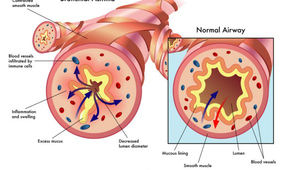 Asthma bronchiale kann unterschiedliche Ursachen haben. Bei vielen Menschen ist Asthma allergisch bedingt, es kann aber auch an einer besonders keimanfälligen Lunge liegen. Bei einem Asthma-Anfall hat der Patient große Schwierigkeiten, Luft zu bekommen. Dies wird durch die Verkrampfung der Atemwegsmuskulatur, das Anschwellen der Schleimhäute und die dadurch vergrößerte Schleimproduktion verursacht. Es erfolgt eine Verengung der Bronchien und es entstehen die, für einen Asthma-Anfall typischen Symptome.